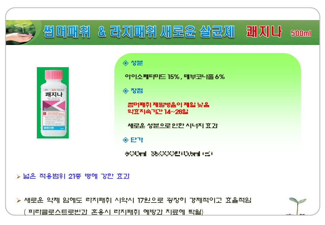" 한국잔디 전용 제초제로 안정성이 골프장 뿐 아니라 공원에서도 많이 사용"
